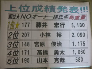 今回もブラックバス3本の重量で競います(同重量の場合は最大魚の長さ)
